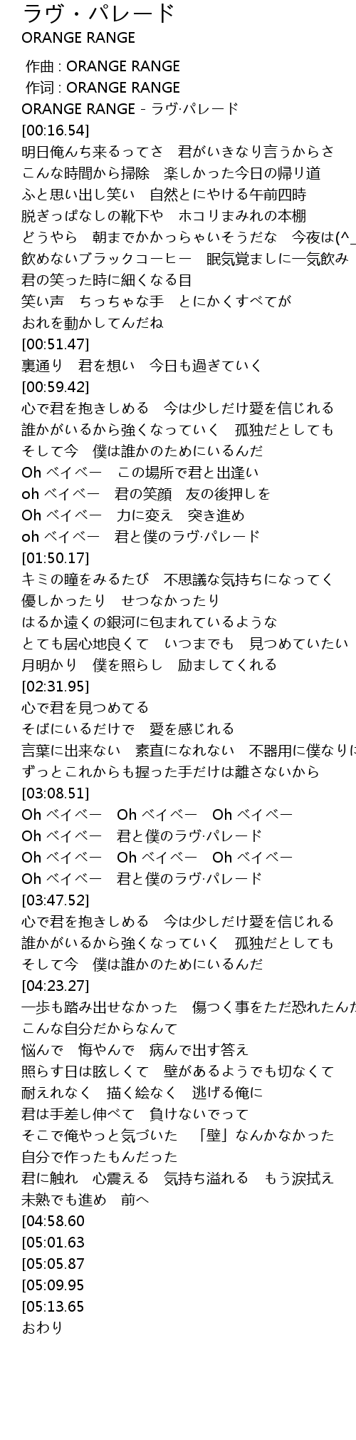 | [00:00.00] | ORANGE RANGE - ラヴ·パレード |
