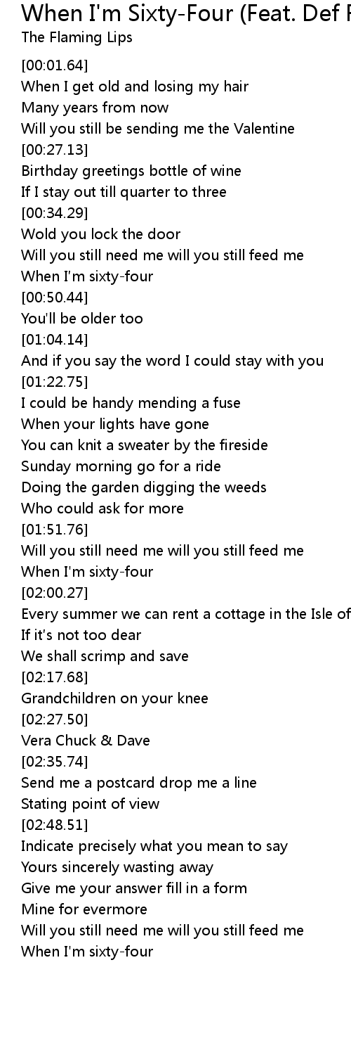 | [00:44.54] | When I m sixtyfour |