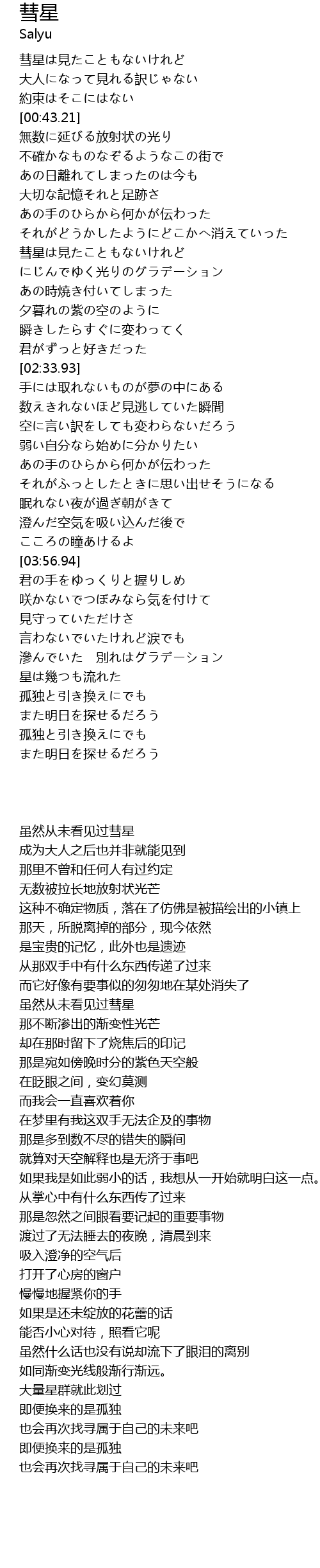 | [03:36.22] | 眠れない夜が過ぎ朝がきて |