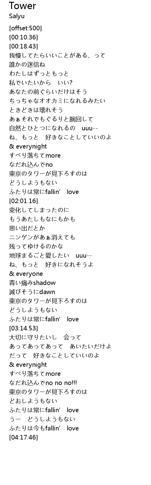 | [03:00.10] | 東京のタワーが見下ろすのは |