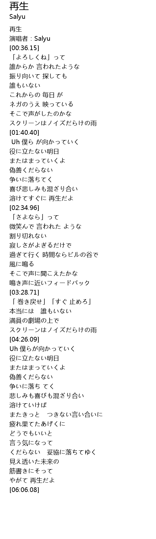 | [00:09.13] | yǎn chàng zhě: Salyu |