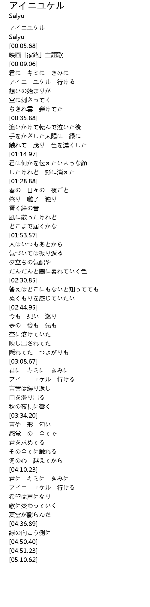 | [00:45.15] | 追いかけて転んで泣いた後 |