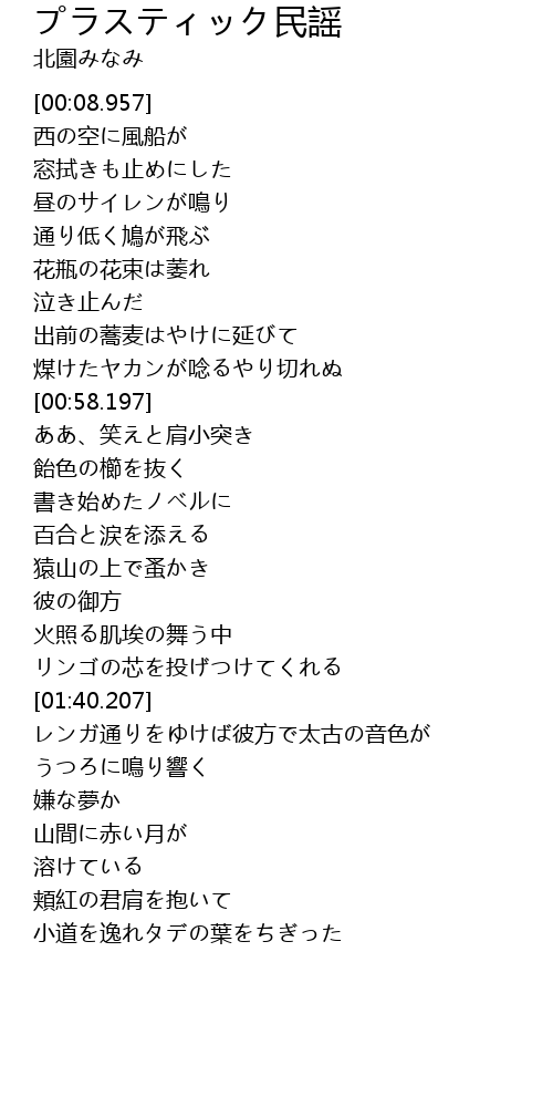 | [00:44.448] | 煤けたヤカンが唸るやり切れぬ |