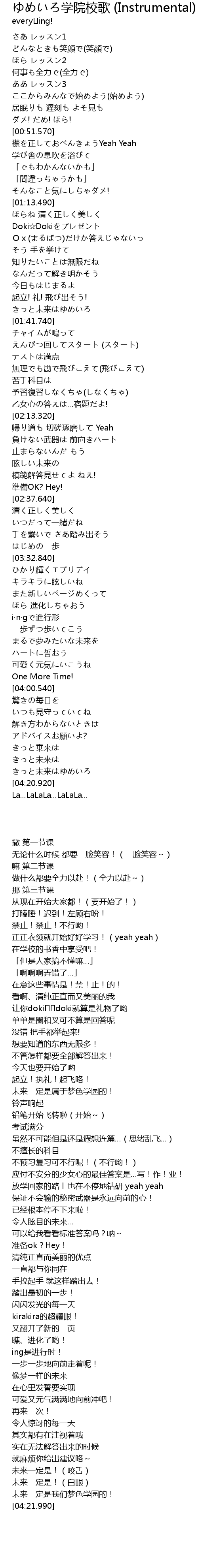 | [00:46.540] | 居眠りも 遅刻も よそ見も |