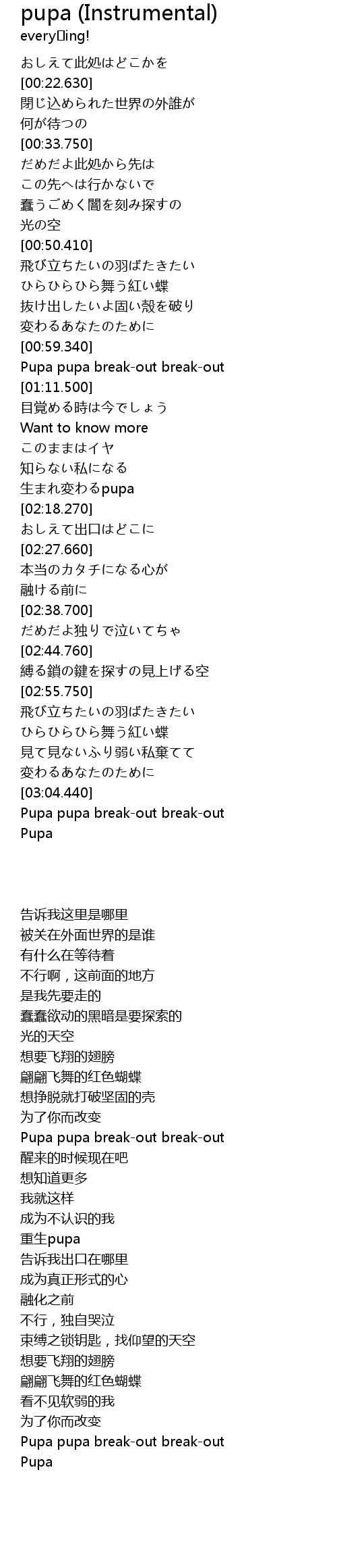 | [02:10.640] | 生まれ変わるpupa |