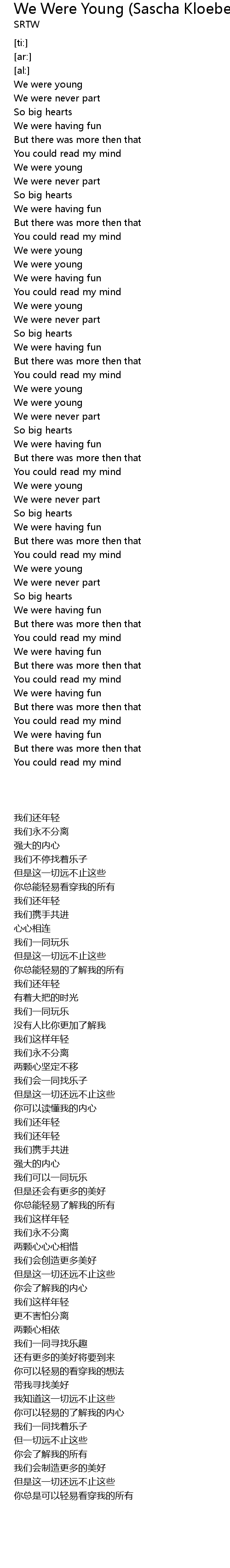 We Were Young (Sascha Kloeber Remix) Lyrics