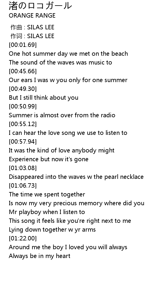 | [01:04.17] | Disappeared into the waves w the pearl necklace |