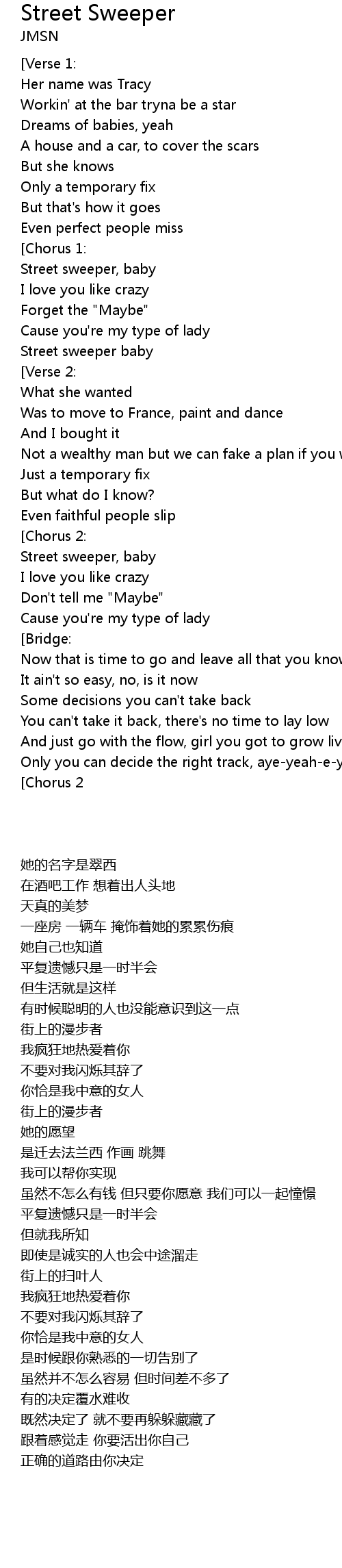 | [00:47.07] | Street sweeper, baby |