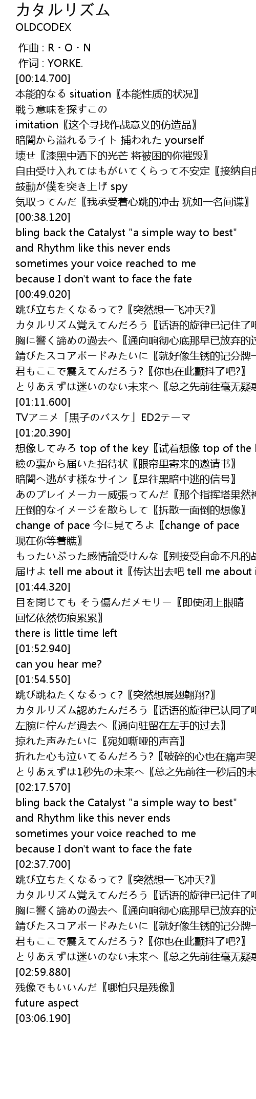 | [00:52.350] | カタルリズム覚えてんだろう〖话语的旋律已记住了吧〗 |