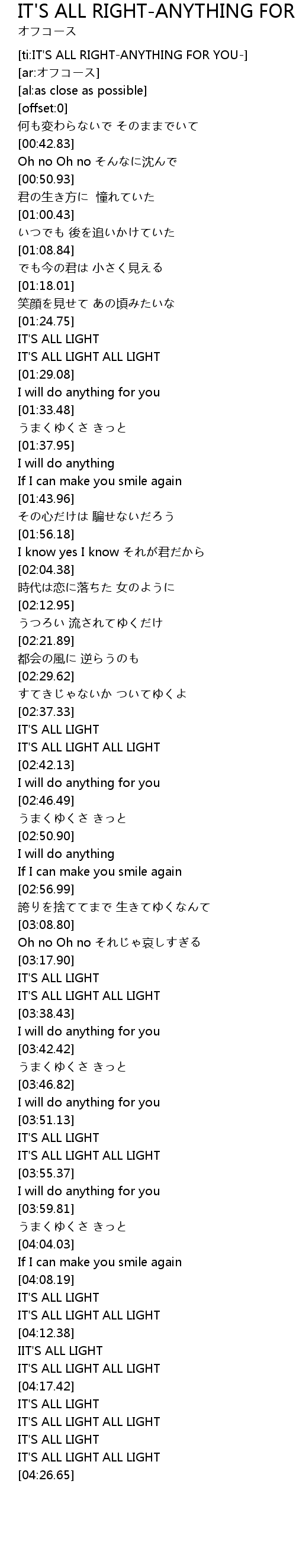 | [ti:IT'S ALL RIGHT-ANYTHING FOR YOU-] | |