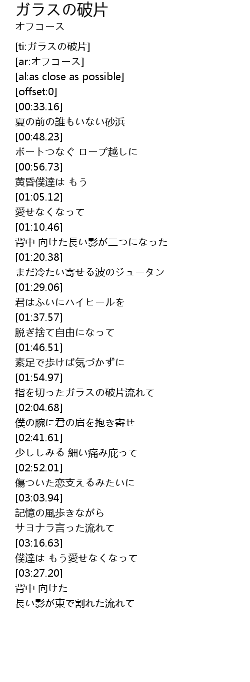 | [00:42.16] | 夏の前の誰もいない砂浜 |