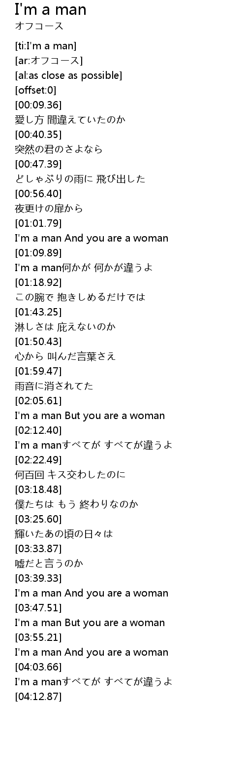 | [03:51.76] | I' m a man But you are a woman |