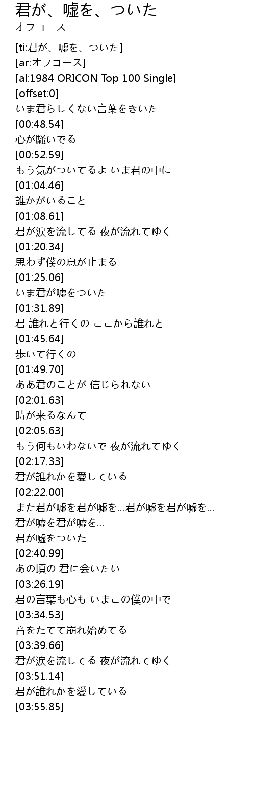| [02:34.07] | 君が嘘を君が嘘を… |