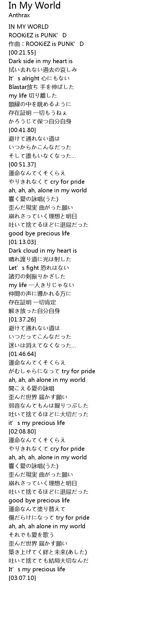 | [00:00.93] | IN MY WORLD |