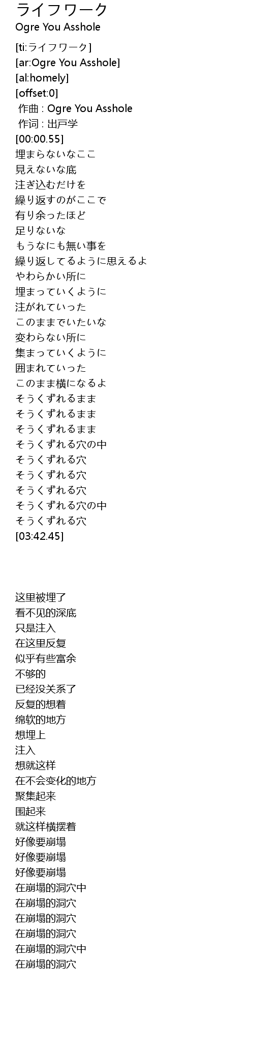 | [00:00.00] | zuò qǔ : Ogre You Asshole |