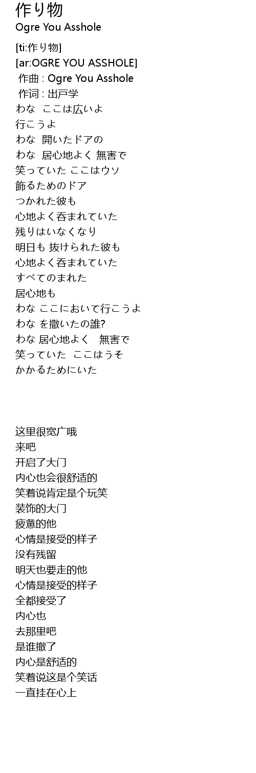 | [00:00.00] | zuò qǔ : Ogre You Asshole |