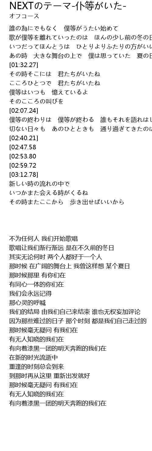 | [00:35.42] | 誰の為にでもなく 僕等がうたい始めて |