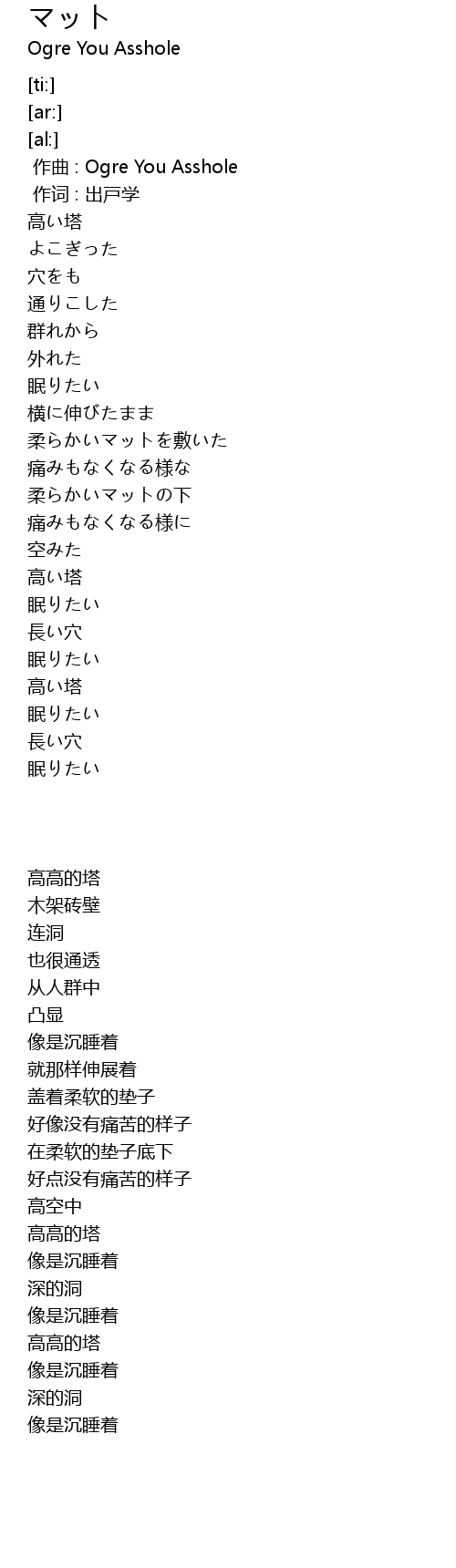 | [00:00.00] | zuò qǔ : Ogre You Asshole |