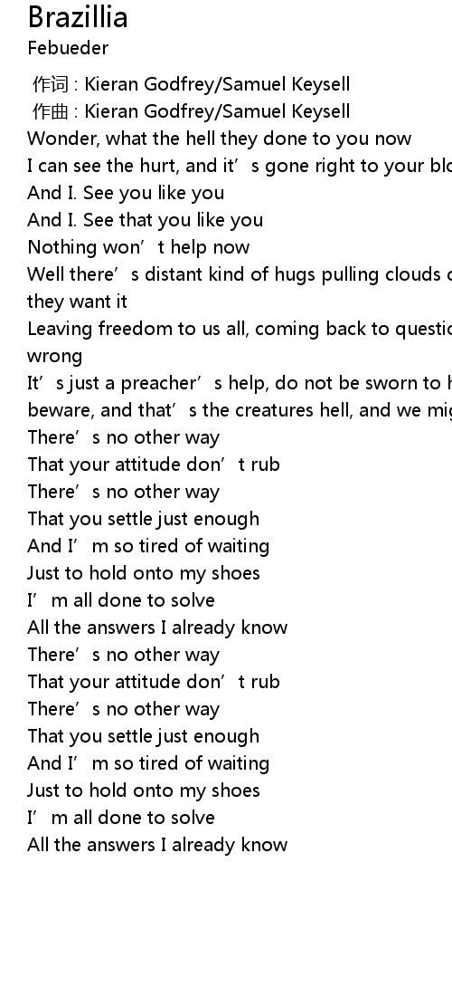 | [00:00.000] | 作词 : Kieran Godfrey/Samuel Keysell |