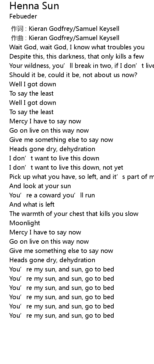 | [02:49.88] | You’re my sun, and sun, go to bed |