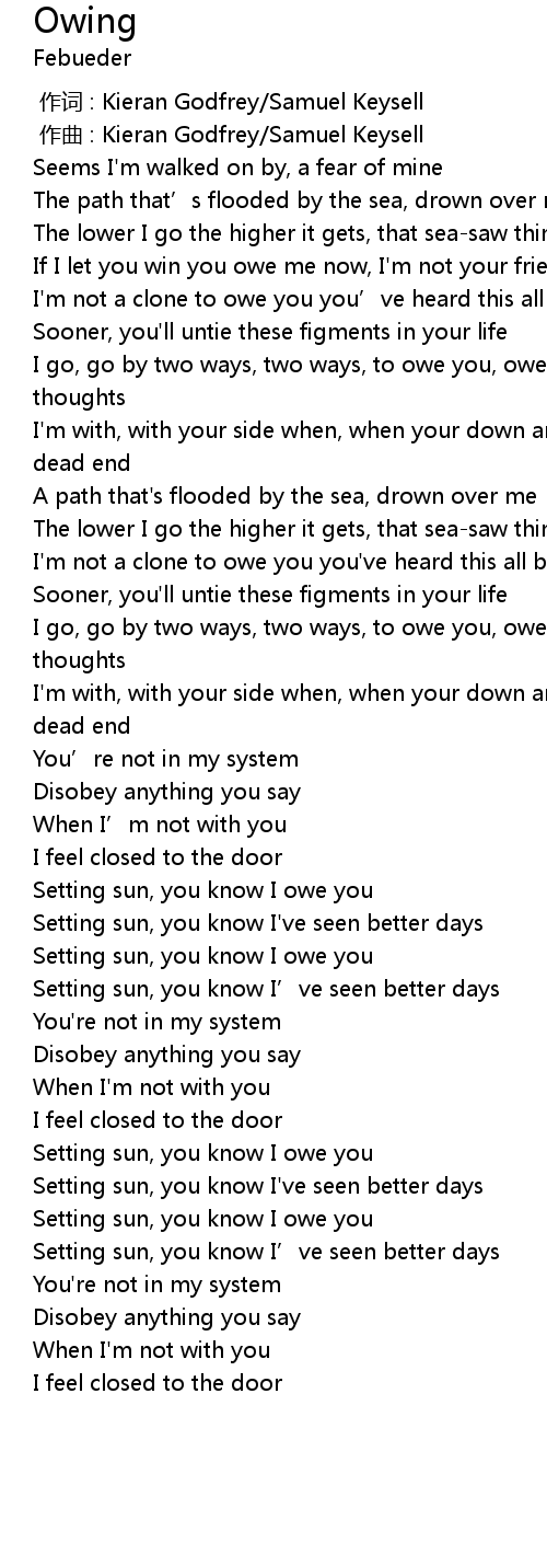 | Song | Owing |