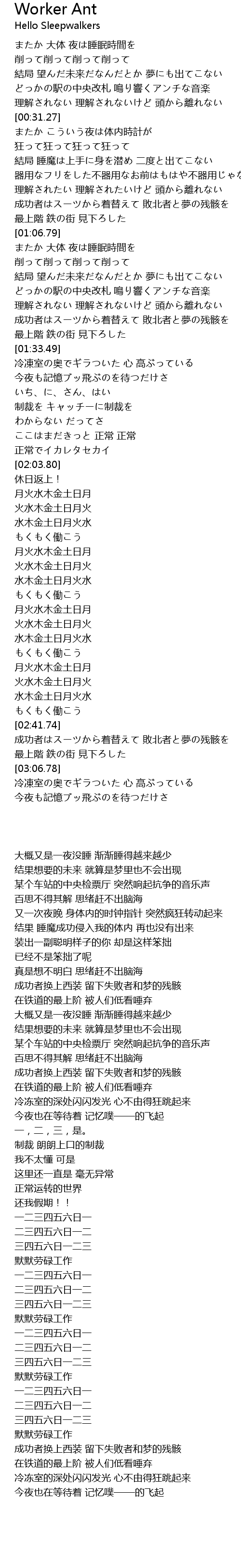 | [00:44.97] | 結局 睡魔は上手に身を潜め 二度と出てこない |