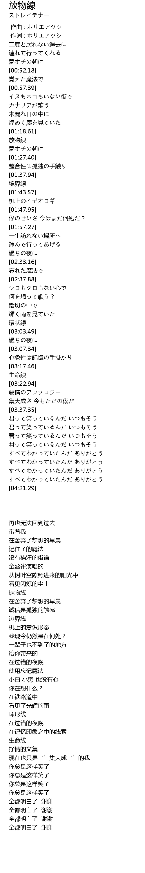 | [04:00.48] | すべてわかっていたんだ ありがとう |