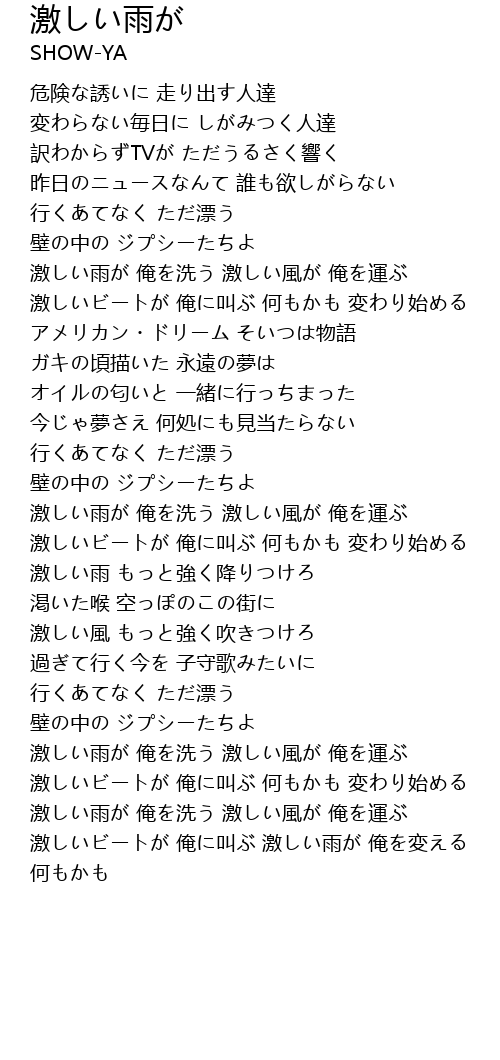 | Song | 激しい雨が |