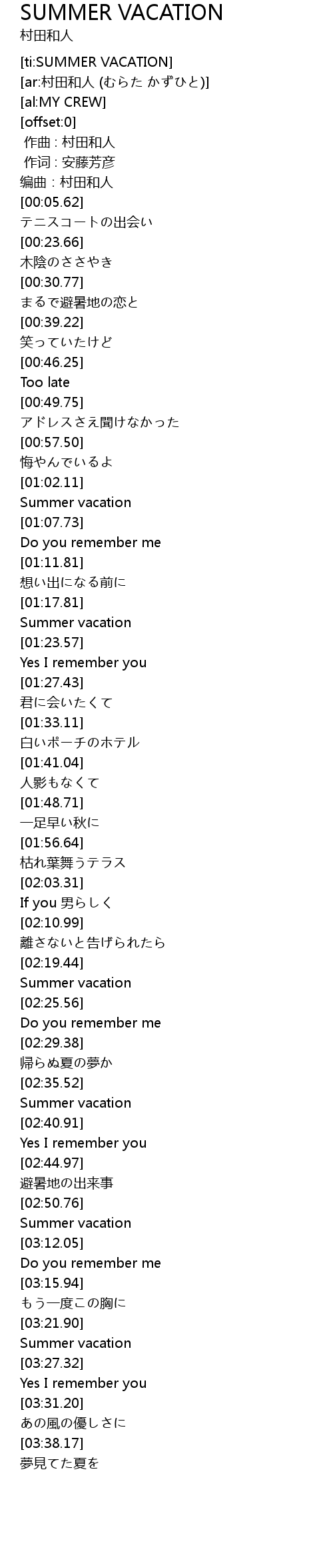 | [00:01.00] | 作词 : 安藤芳彦 |