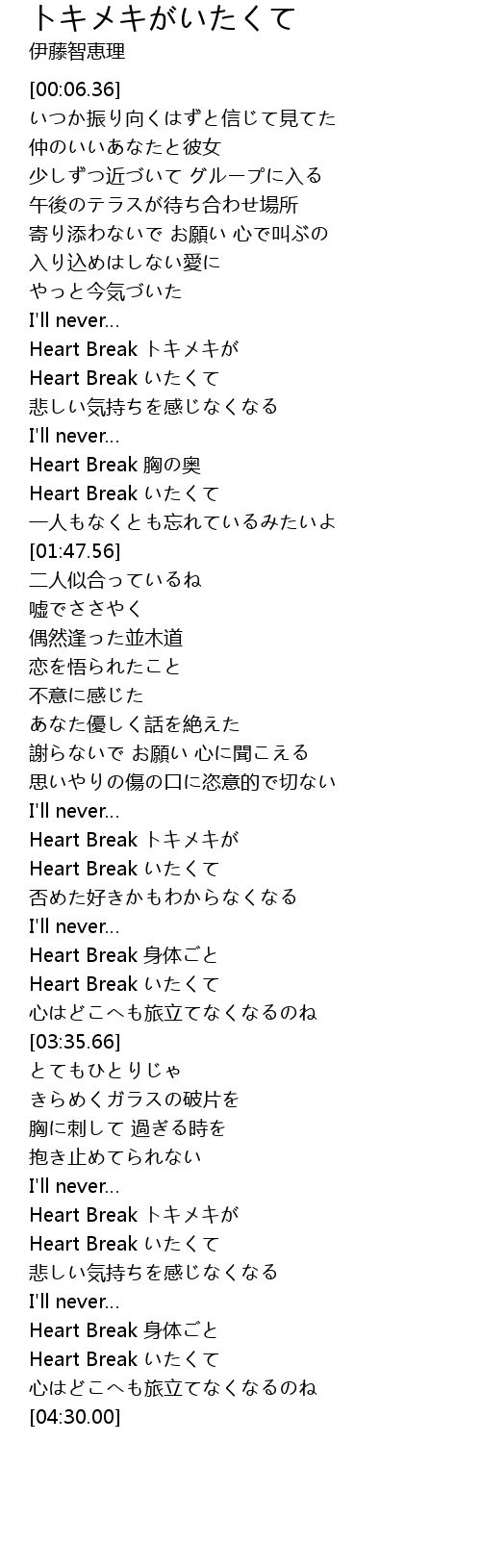 | [04:10.72] | Heart Break 身体ごと |