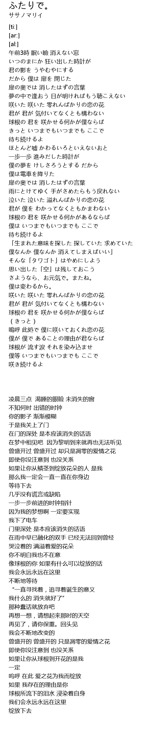 | [03:44.39] | 嗚呼 此処で 僕に咲いておくれ恋の花 |