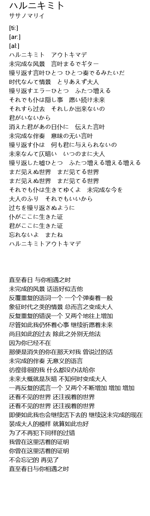 | [02:33.46] | ハルニキミトアウトキマデ |