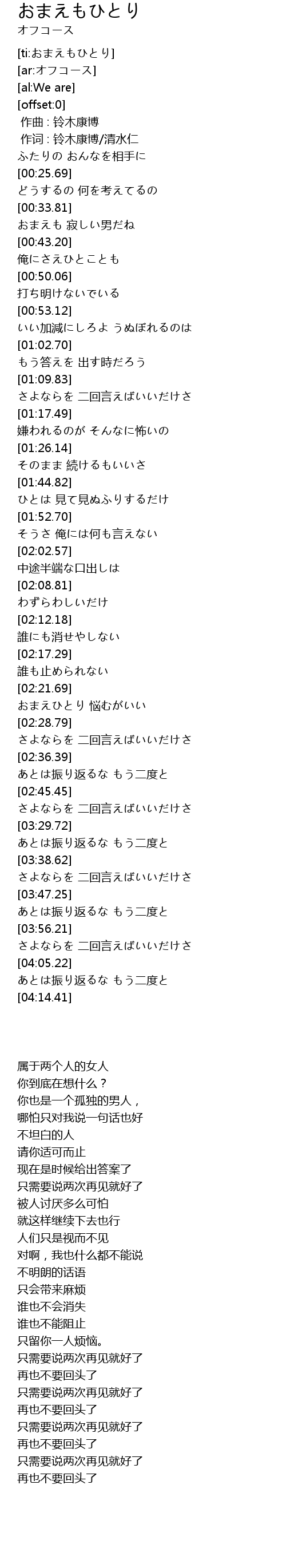 | [03:42.45] | さよならを 二回言えばいいだけさ |