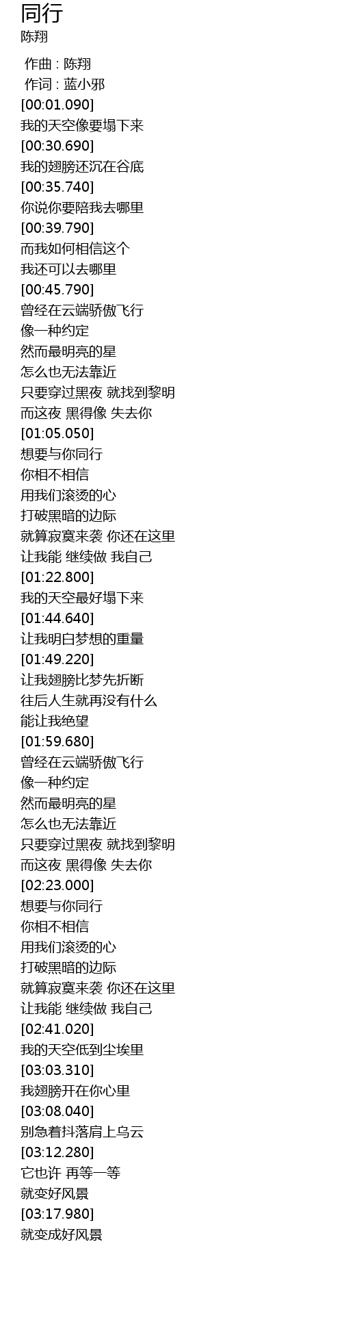 | [02:23.860] | xiǎng yào yǔ nǐ tóng háng |