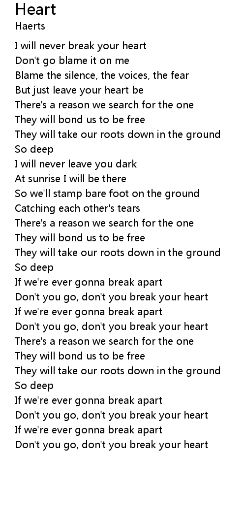 | [03:23.85] | Don't you go, don't you break your heart |
