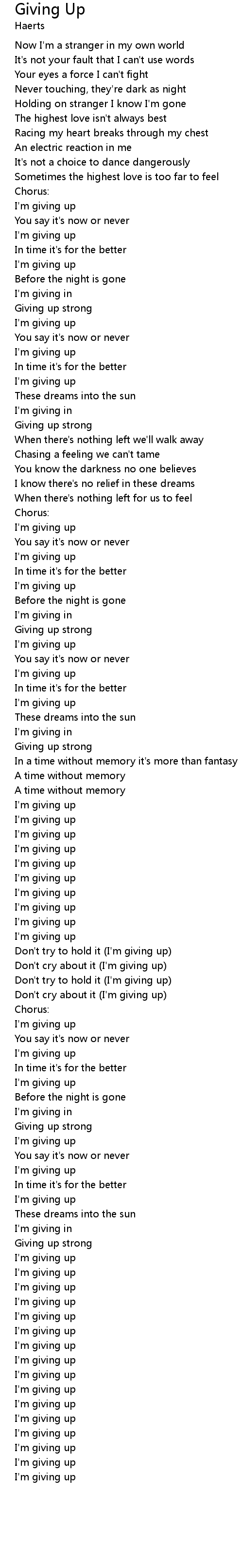 | Don't try to hold it (I'm giving up) | |