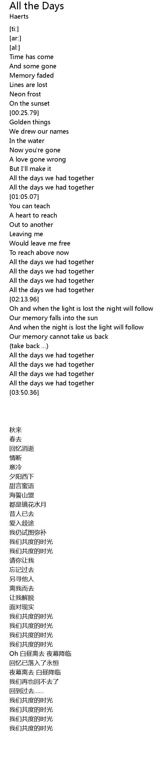 | [02:31.20] | Oh and when the light is lost the night will follow |