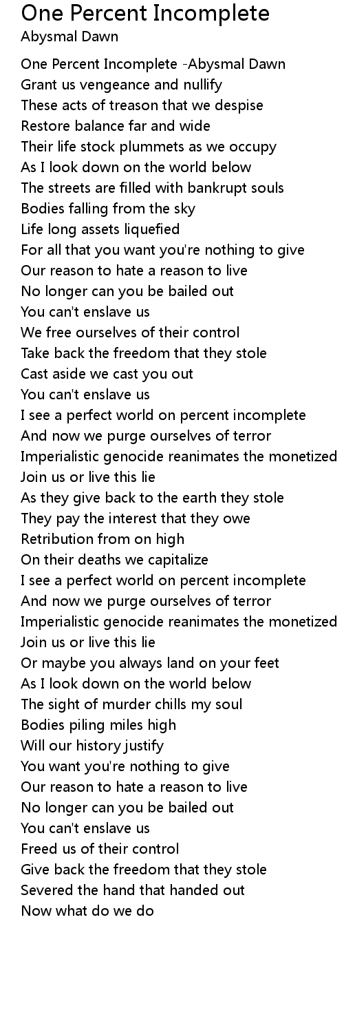 [00:00.00] One Percent Incomplete -Abysmal Dawn