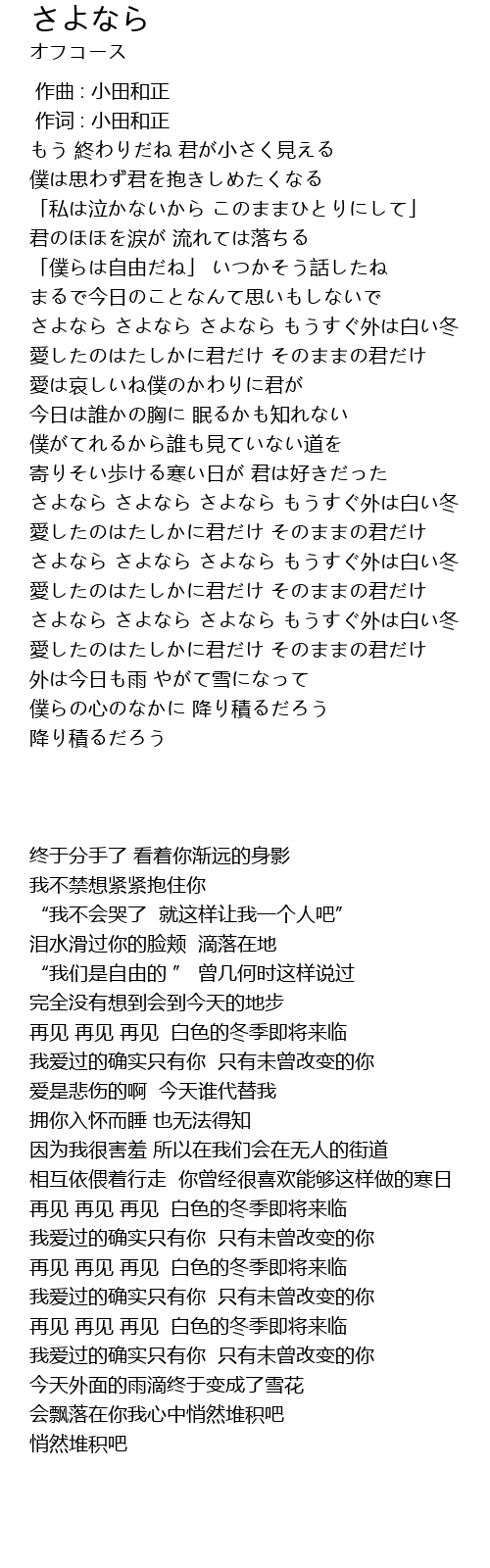 | [01:23.24] | さよなら さよなら さよなら もうすぐ外は白い冬 |