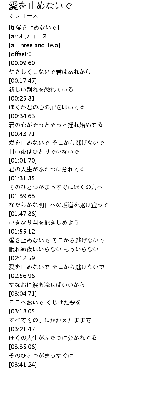 [ti:愛を止めないで] |