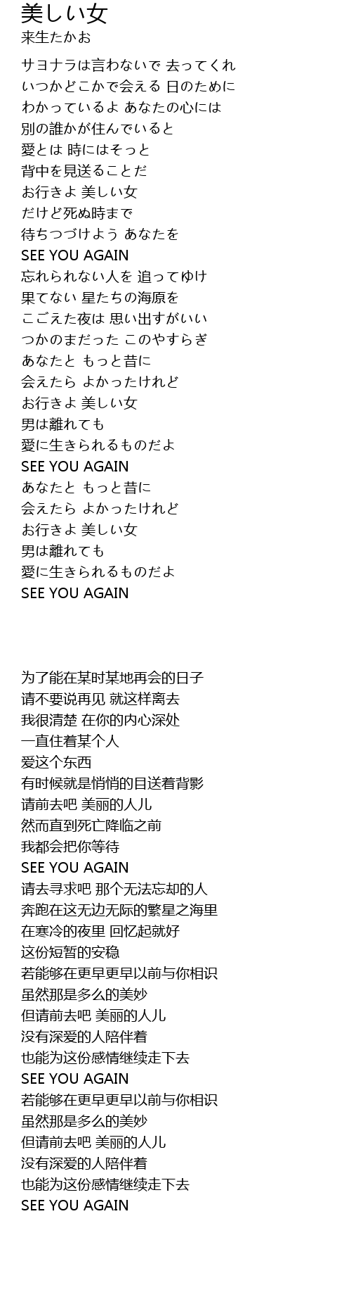 | Song | 美しい女 |