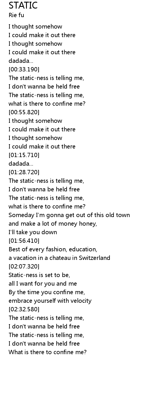 | [02:12.560] | Static-ness is set to be, |