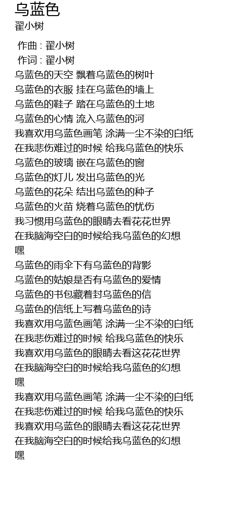 | [00:43.42] | wǒ xǐ huān yòng wū lán sè huà bǐ tú mǎn yī chén bù rǎn de bái zhǐ |