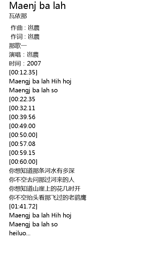 | [01:48.87] | Maengj ba lah Hih hoj |