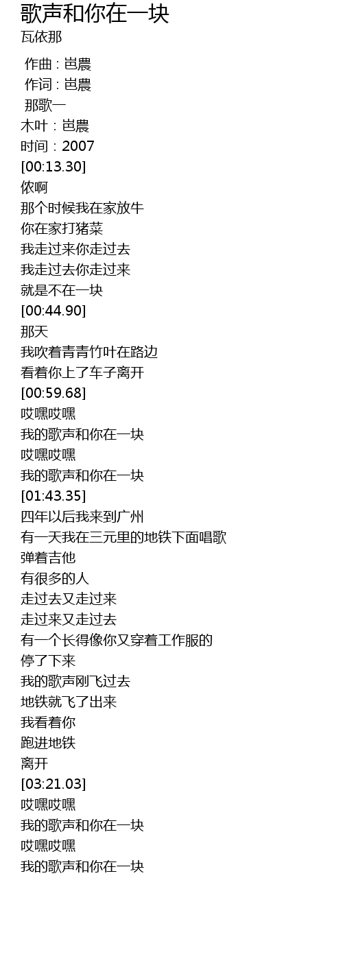 | [03:30.56] | 我的歌声和你在一块 |