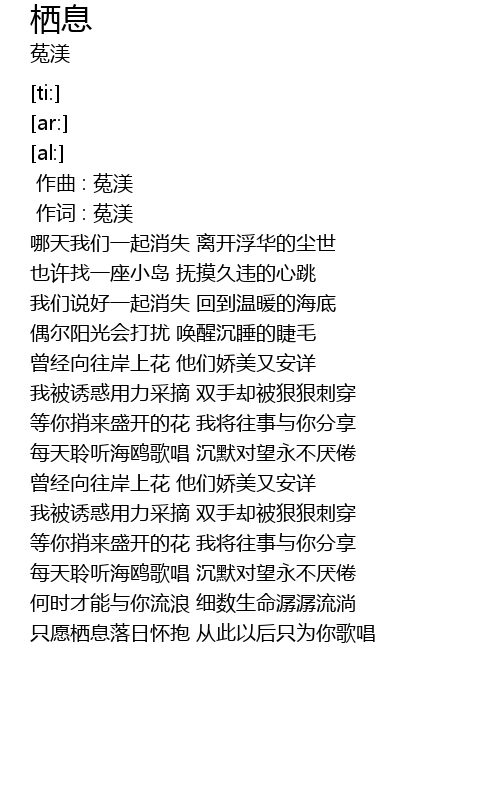 | [00:44.19] | 也许找一座小岛 抚摸久违的心跳 |