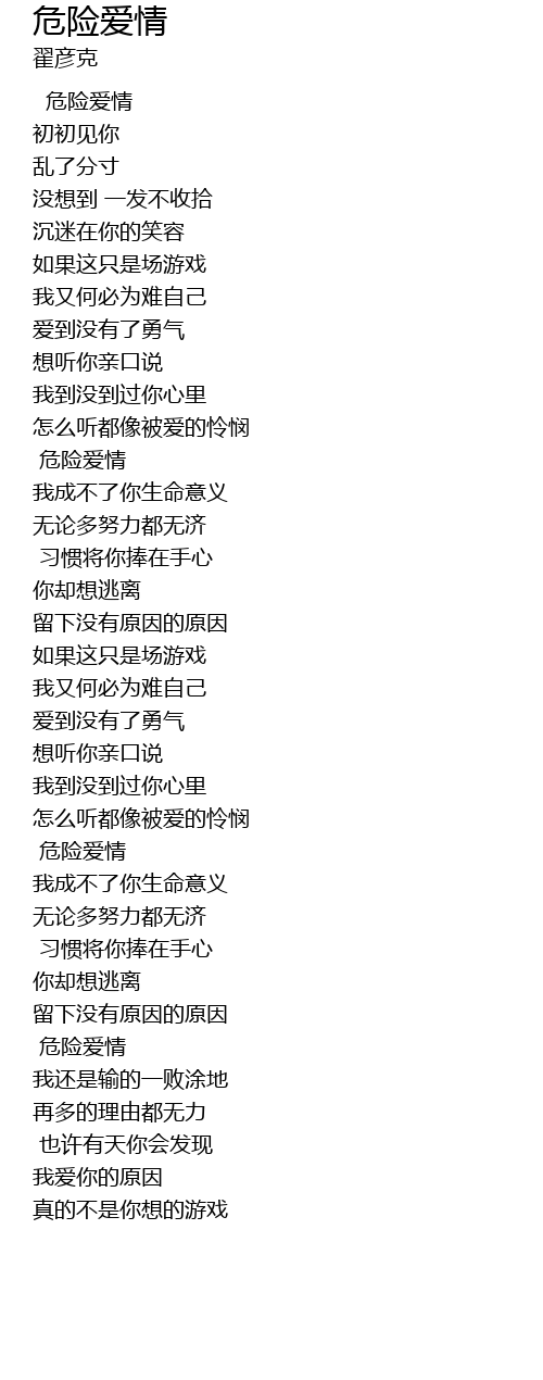 | [00:00.00] | 危险爱情 |
