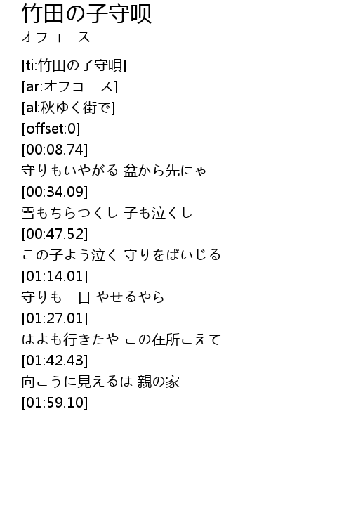 | [01:03.96] | この子よう泣く 守りをばいじる |
