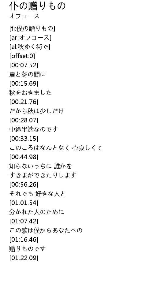 | [00:35.44] | このころはなんとなく 心寂しくて |