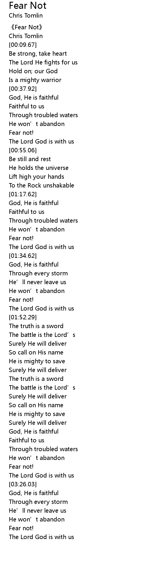 | [00:01.55] | Fear Not |